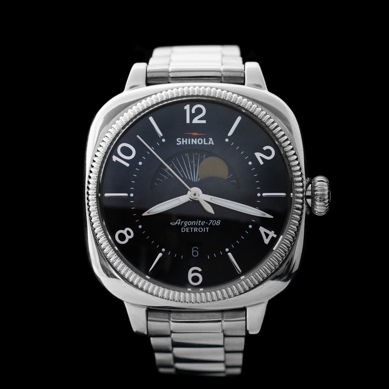 The word lunatic finds its origins in the belief that the moon can cause intermittent insanity, I also find a lot of people who are crazy for moon-phase watches. This Shinola quartz devotes a lot of dial real estate to the passing of the moon and comes in a great size that can suit many.
