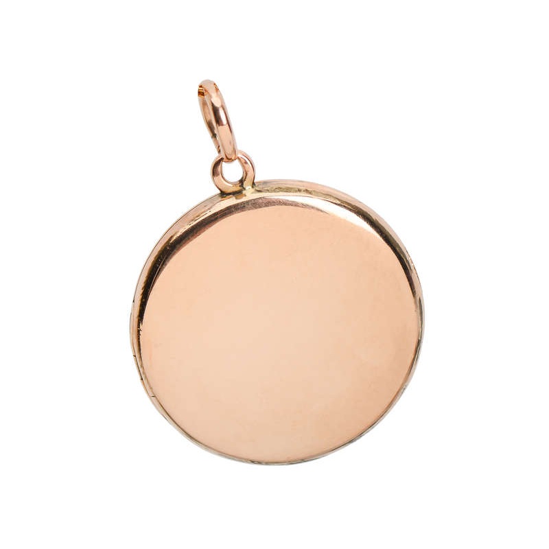 This circa 1900 locket was created in 9k pale rose gold and originated in England. Perfectly round and ever so slightly convex, it is ideal for wear every day. Its size is just right, not too large and not too petite.