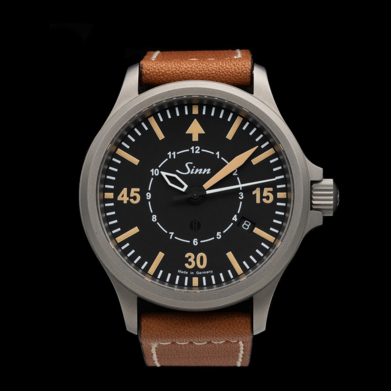 The SINN 856 B-Uhr embodies this legacy, infusing the distinct, classic appearance of a B-Uhr into a manageable 40 mm size. In keeping with the classic B-watch design, the 856 B-watch features a recessed hour hand that aligns with an inner hour ring, while the prominent minute hand sweeps across an external minute track. This minute hand, along with the numerals, indices, and a triangular arrow as the main marker, are accentuated with an ivory-colored coating. The design of the hour and minute hands on the black dial adheres to historical norms, emphasising the minute as the more crucial time unit that needed to be quickly and accurately read.