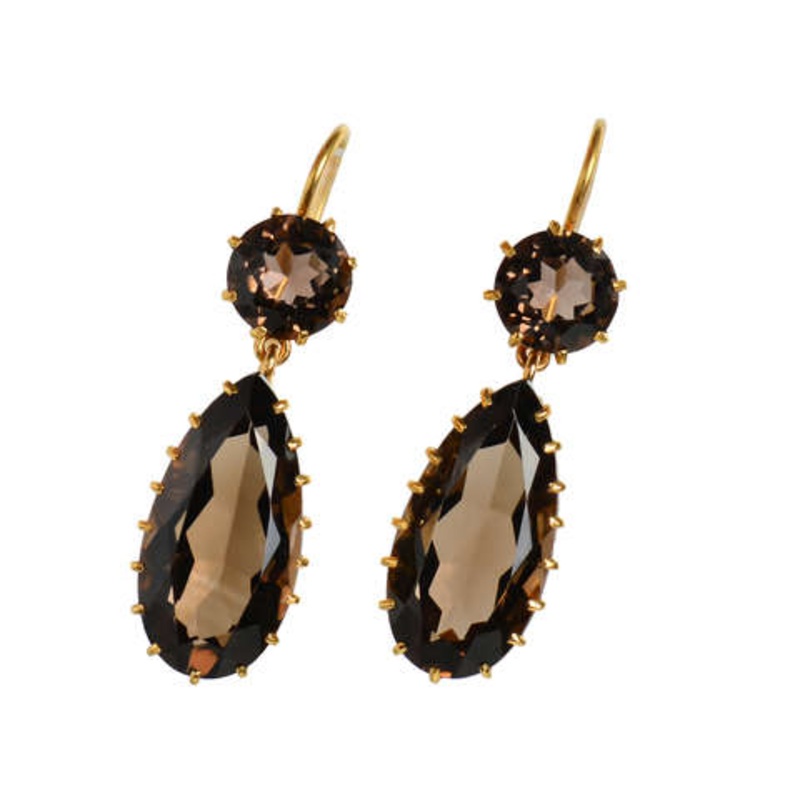 Be your own jewelry influencer, with or without social media.In the spirit of the Georgian and Victorian era, but designed and created not so long ago, these stellar smoky quartz dangle earrings are elegant and wearable.A round faceted top and a pear shape