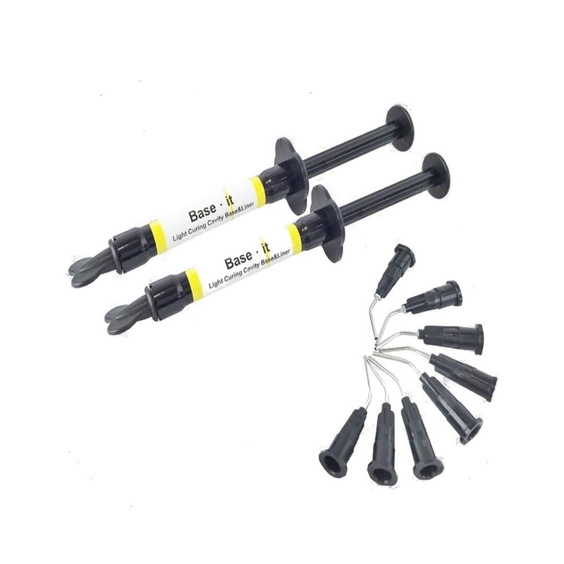 Spident Base-it Light Curing Cavity Base & Liner4x (2- 2g syringes) Light-cured base/liner containing calcium hydroxyapatite in urethane methacrylate oligomer Superior strength compared to GI based products Simulates secondary dentin formation with excelle
