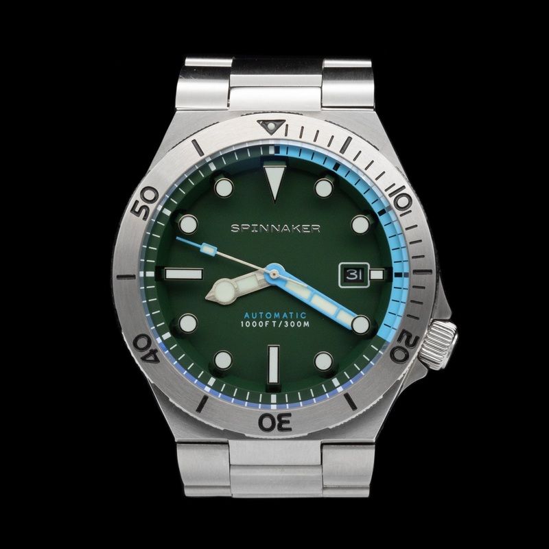 WHAT WE LOVE:While dive watches tend to look very similar to each other, we sometimes get exceptions that break the mould - this Spinnaker limited edition does this in a big way. Vibrant green contrasted with electric blue, and featuring striking floating