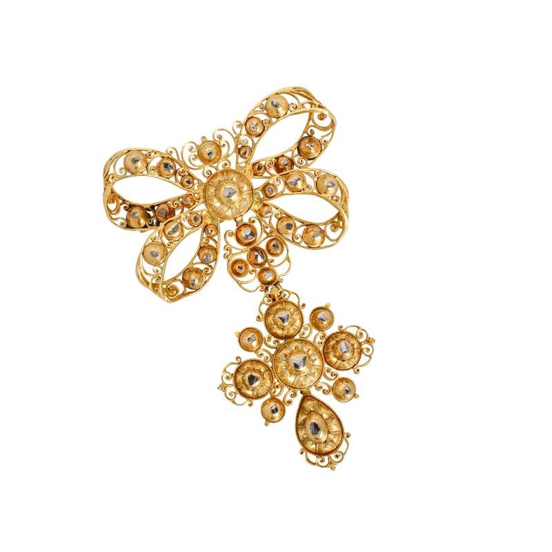 We have the convents of Spain and Portugal to thank for many of our examples of 17th and 18th century grandeur in jewelry. Young women of noble families, who, for various reasons were not married by a certain age, were sometimes left under the care of convents. With them came their families donations of lavish jewels.