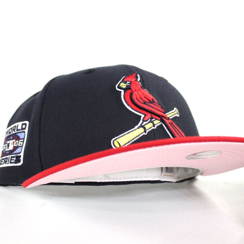 St Louis Cardinals 2006 World Series New Era 59Fifty Fitted Hat in Navy, Red and PINK Under Brim.