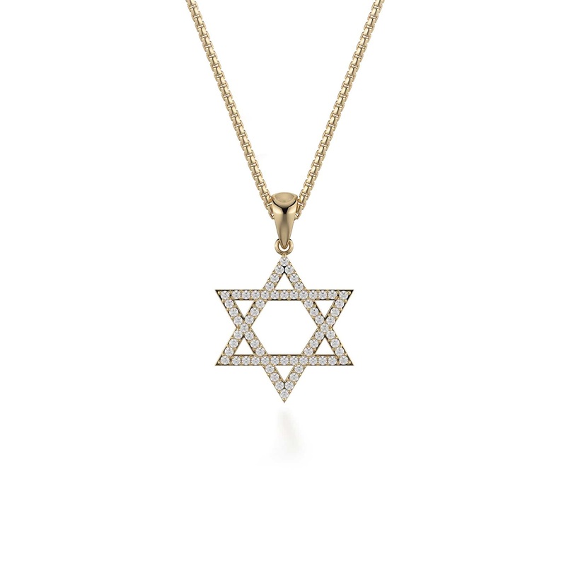 Our handcrafted Star of David Diamond Pendant Necklaceilluminates with 0.50 carat of round diamonds in a prong setting. Available in 14K Yellow Gold, 14K White Gold, and 14K Rose Gold.