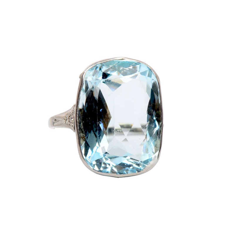An aquamarine ring to top all others...become entranced with this exceptional gemstone and wearable beauty. For those that ADORE old cut stones, this one is all personality, color, vibrancy, and life. Cushion cut, it is a grand choice at 13.75 carats of po
