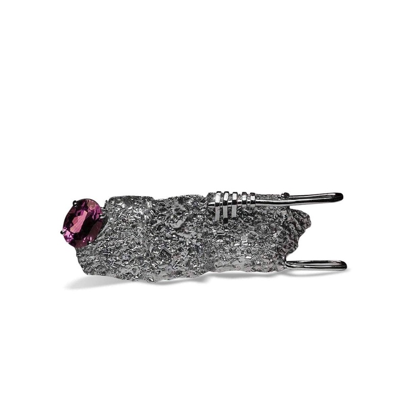 Almost buried at the bottom of this pendant is a stunning purple amethyst. It has a depth of color that charms all who behold it. Freeform shape allows this piece to create itself. It is a mixture of precious metals that have captivating texture.Metal: 925
