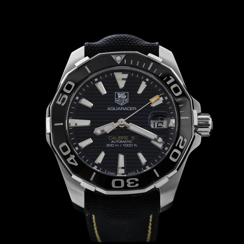 In a smart black and yellow colour scheme, this Tag Heuer Aquaracer is one attractive watch. Well known for their versatility and reliability there is a whole life left to enjoy in this watch.