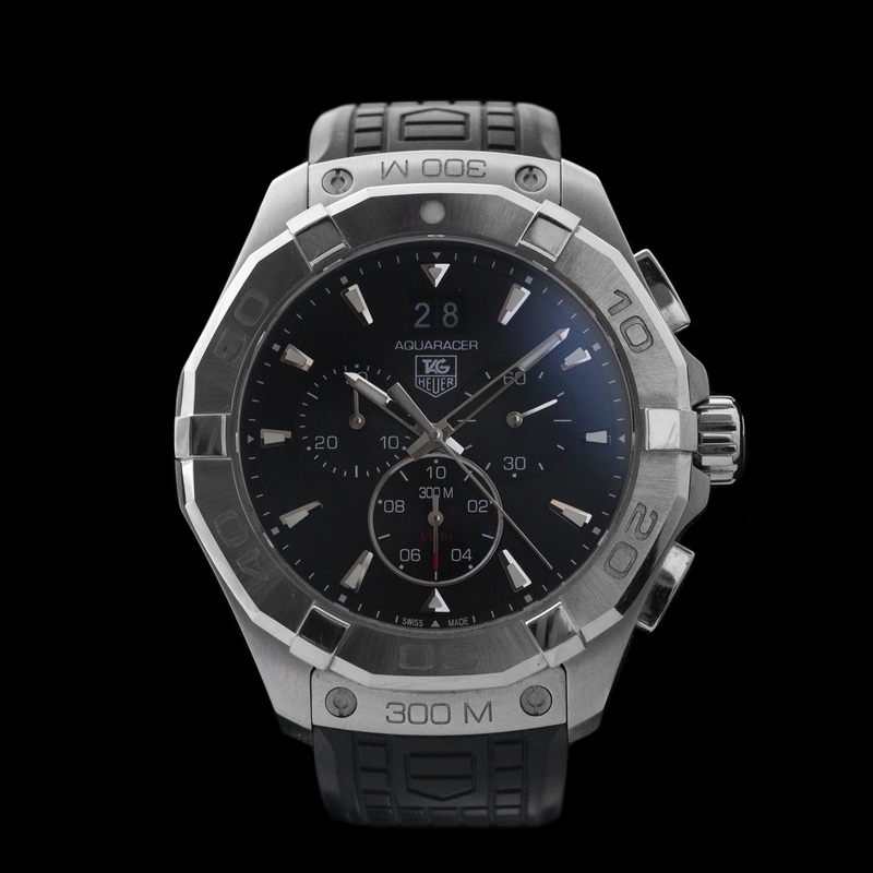 There is a lot to enjoy in the Tag Heuer Aquaracer line, they offer an impressive range from chronographs, to alarm watches to GMT models. This quartz Chrono is a great wearable size.