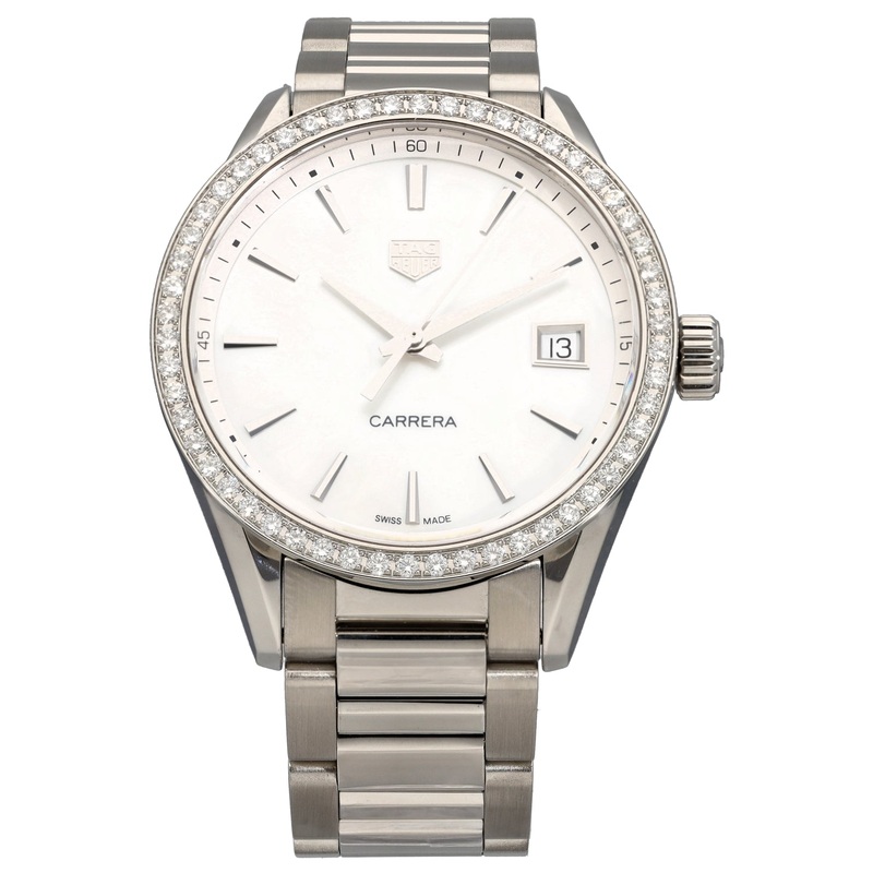 TheTag Heuer Carrerais an intricate timepiece which was launched byTag Heuerbackin 1963,being a perfect addition to any watch collection. This pre-owned example is finished with a white Mother of Pearl dial inside a 36mm stainless steelcase, which is fitted on an 19cm stainless steel bracelet. The watch is also powered by an Quartz movement and is water resistant up to 100metres.