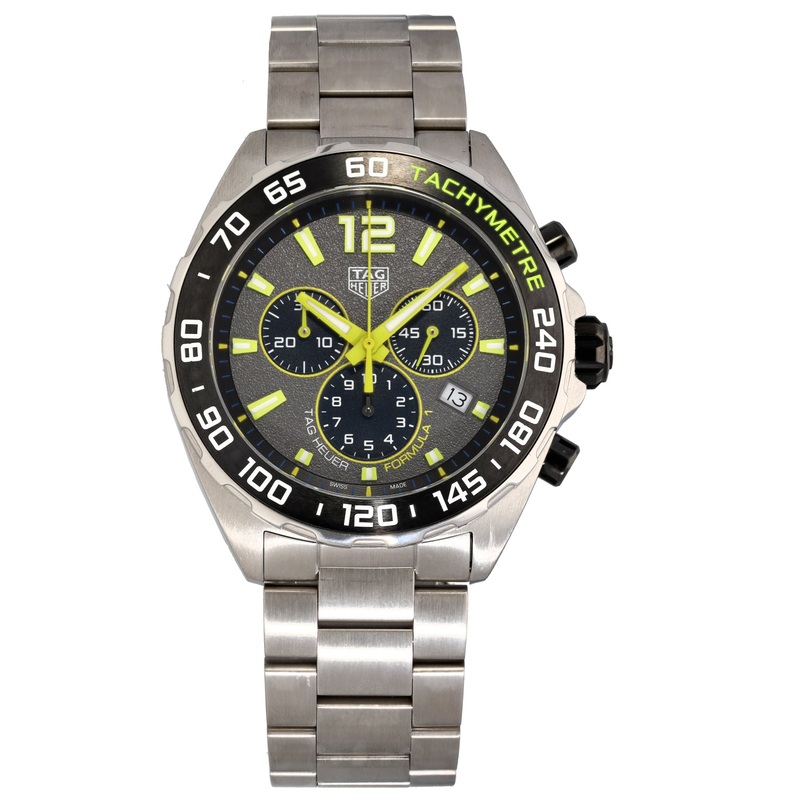 TheTag Heuer Formula 1is an intricate timepiece which was launched byTag Heuerbackin 1986,being a perfect addition to any watch collection. This pre-owned example is finished with a grey dial inside a 43mm stainless steelcase, which is fitted on a 20.5cm stainless steelbracelet. The watch is also powered by a Quartzmovement and is water resistant up to 200 metres.