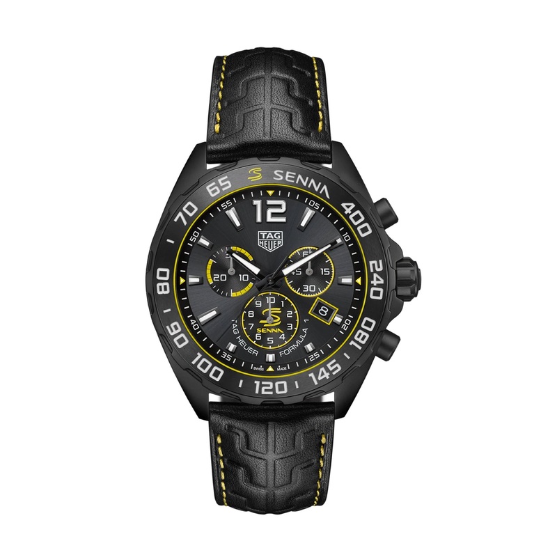 This special edition racing chronograph pays tribute to our legendary ambassador Ayrton Senna, and celebrate the partnership between TAG Heuer and the Senna Foundation. Versatile and water-resistant to 200 meters, its the ultimate motor racing watch.