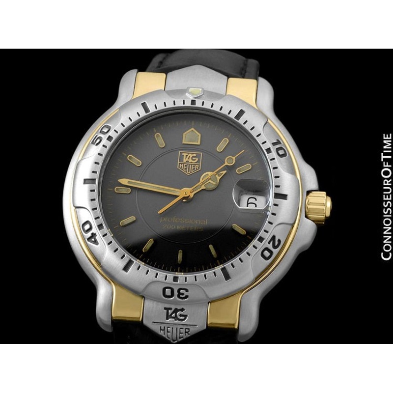 Featuring a rotating elapsed time bezel, and precision quartz movement that times to 1/10 of a second, the TAG Heuer 6000 Professional watch unites sport and prestige. Its steel architecture is both elegant and sporty.