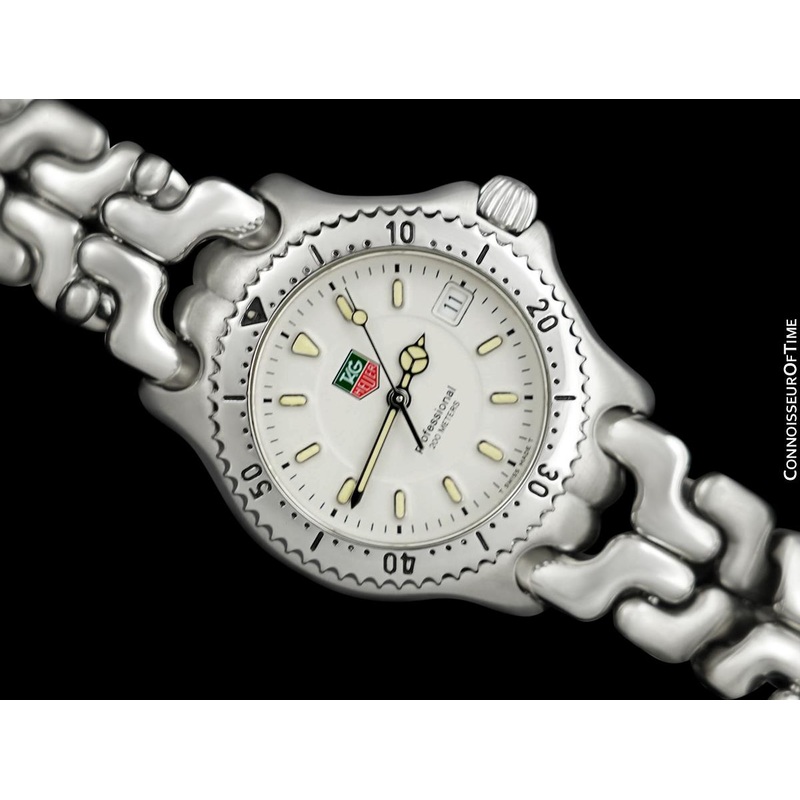 Today's offering showcases this Certified Pre-Owned classic TAG Heuer Professional Sport Elegance Series divers watch with original bracelet. It measures 36mm with the guards and 38mm with the screw down crown. It's a great watch for a man who doesn't have