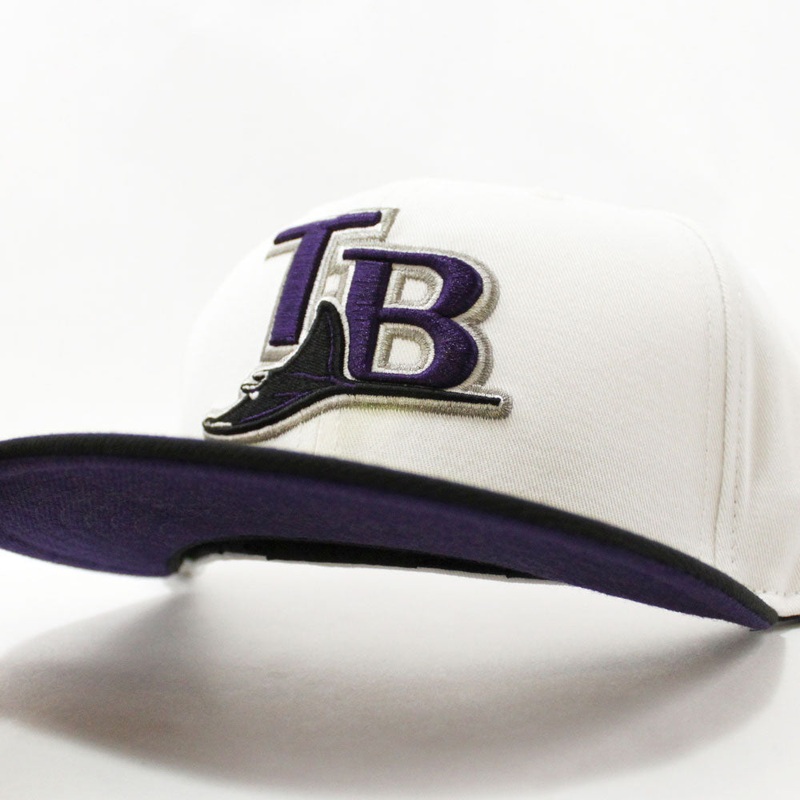 Tampa Bay Devil Rays New Era 59Fifty Fitted Hat in WHITE, BLACK & Purple Under Brim.