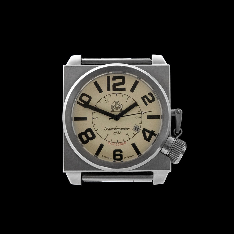 WHAT WE LOVE:Here's a watch that will start a conversation. Big & square, its lots of fun plus if you run out of plates you can eat your lunch off it.Brand: Tauchmeister Reference: TO209Model: Canteen Crown DiverMovement: Japanese AutomaticCase Material: S