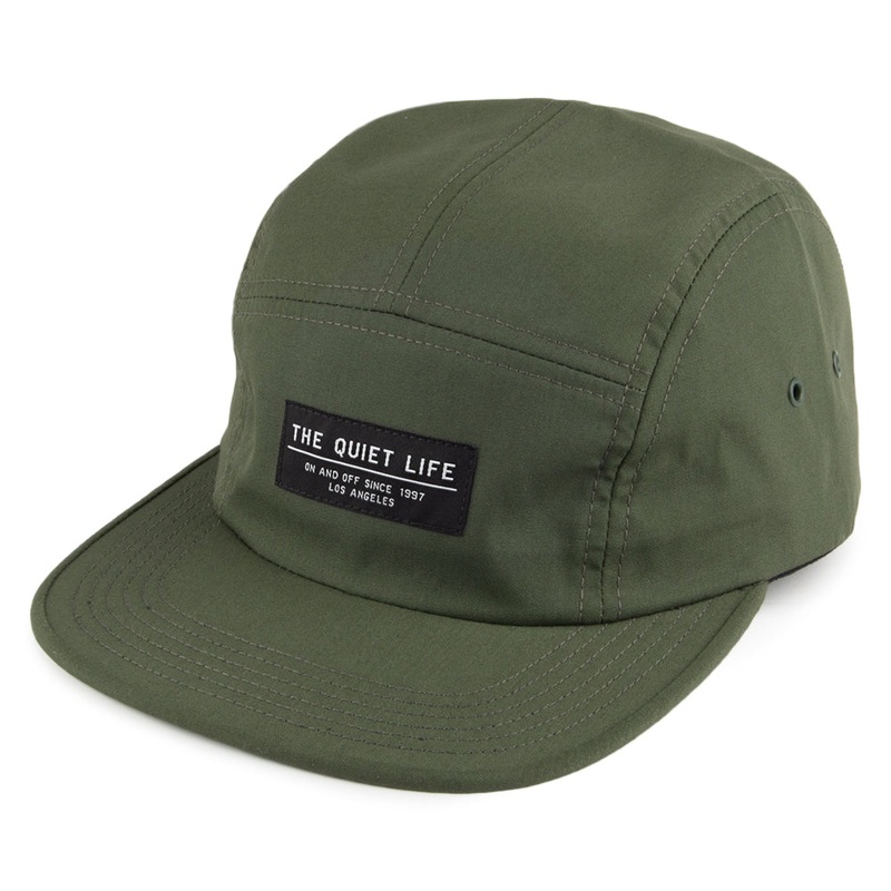 The Foundation 5 panel cap in olive from The Quiet Life is the fresh new colour this season. This poplin cotton cap features a simple design on the front of the cap, eyelets on the side for ventilation, and an adjustable strap at the back so it fits most s