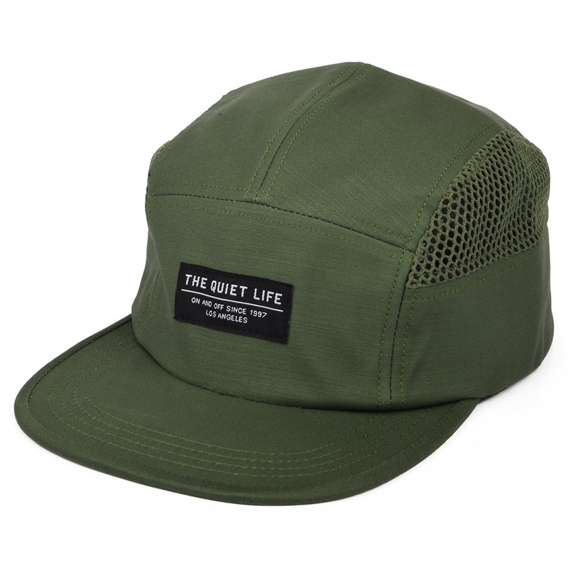 The Military Mesh 5 panel cap in army green from The Quiet Life is the fresh new style this season. This 100% cotton cap features a simple design on the front of the cap, mesh panels on the sides for ventilation, and an adjustable strap at the back so it f