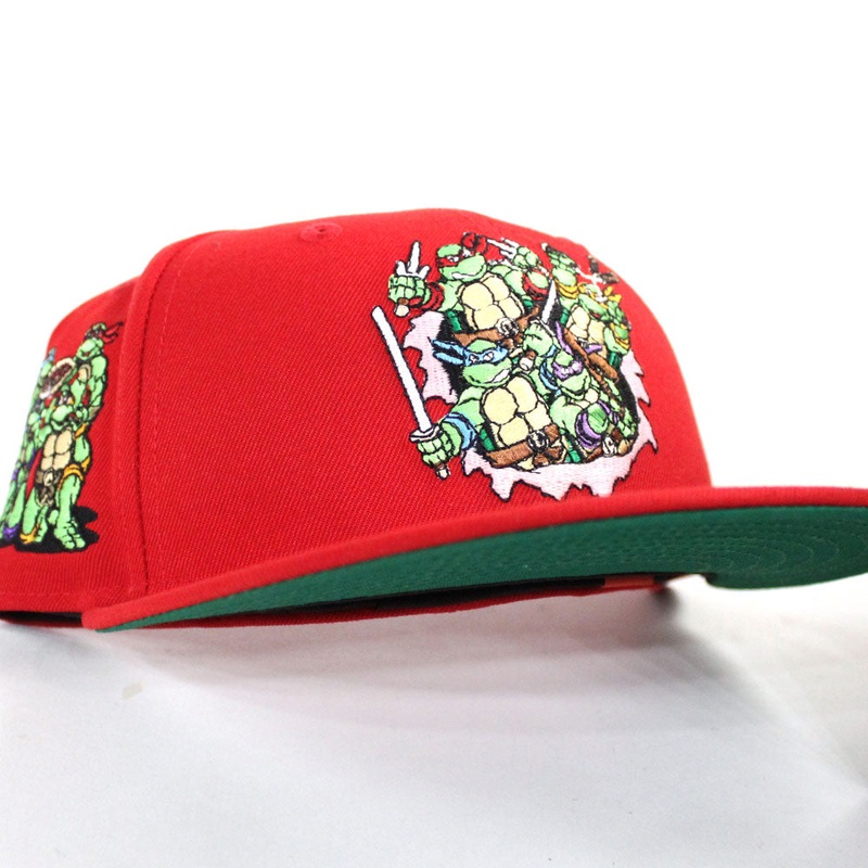 The Teenage Mutant Ninja Turtles New Era 59Fifty Fitted Hat in RED & Green Under Brim.