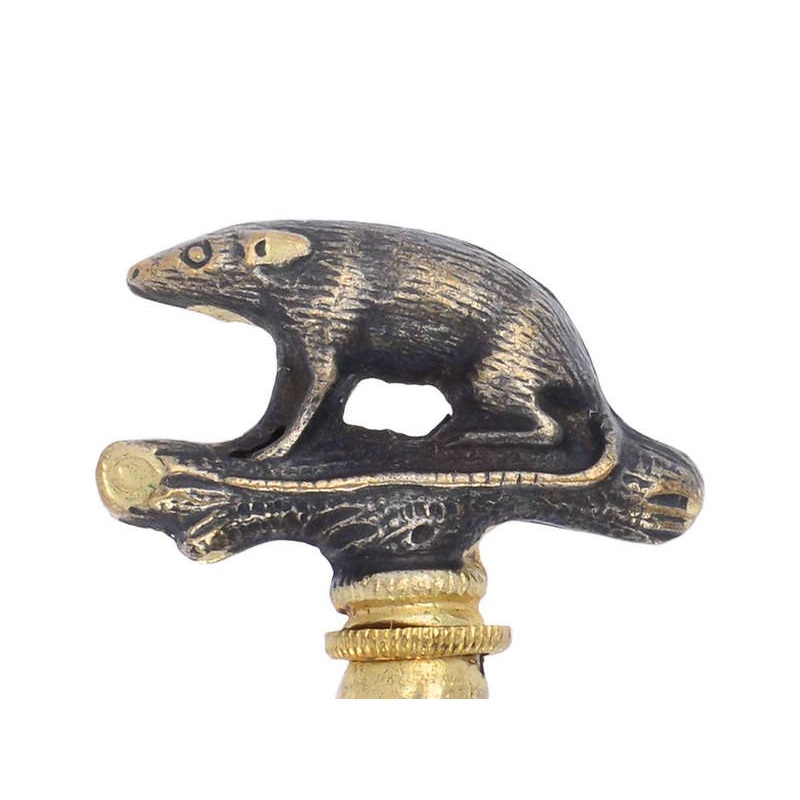 While this isn't Chinese in origin, this speaks to those born in the year of the rat, or all our rat and mouse lovers. A pert and lithe long-tailed rat rests atop a log. The watch key stem sports a bulbous shape that was textured to resemble bark or wood.