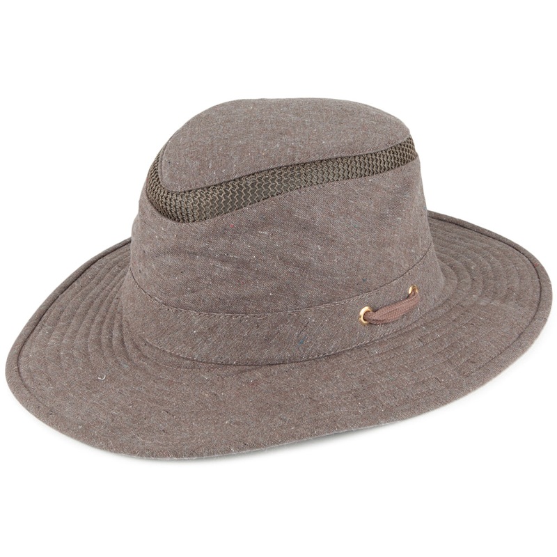 Uses Canadian Sizes, NOT UK HAT SIZES. See the sizing info tab for details.The Tilley TMH55 Mash Up Cotton & Sun Hat in brown is a sun hat suited for the great outdoors. The hat is made from a unique new fabric which uses recycled yarn. This hat repels wat