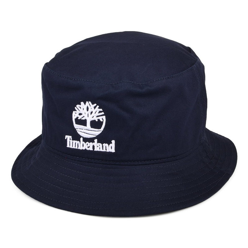 Here is the Timberland Hats Youth Culture Cotton Twill Bucket Hat in navy blue. This classic bucket hat made of 100% cotton is unlined and comes with a sweatband for additional comfort. The Timberland name and logo are embroidered on the front. The hat can