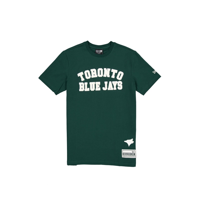 The Toronto Blue Jays Dark Green Logo Select T-Shirt features a zig zag stitched twill applique Blue Jays wordmark at the chest with an embroidered team logo above a woven tag at the left hip.
