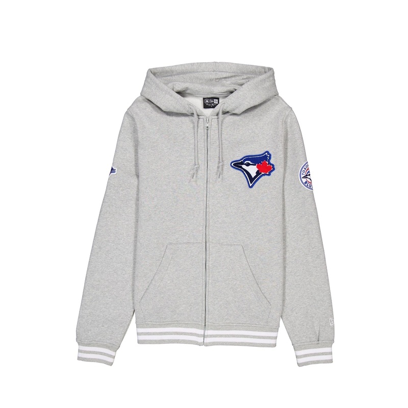 The Toronto Blue Jays Gray Logo Select Full-Zip Hoodie features a chenille applique Blue Jays logo at the left chest with an alternate team logo patch embroidered at the left arm and a 1993 World Series patch at the right arm.Fabric: 80% Cotton, 20% Polyes