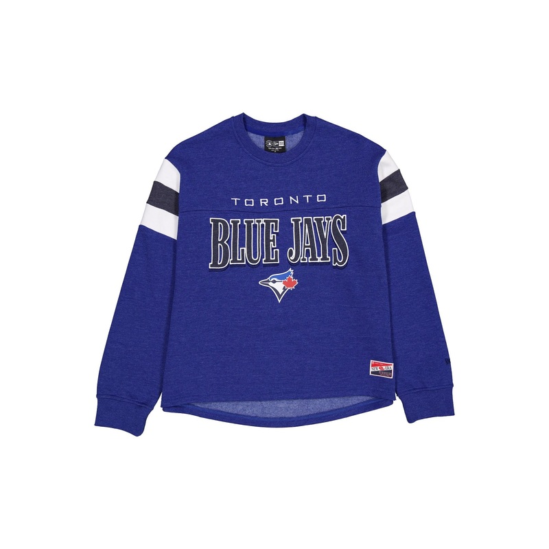 The Toronto Blue Jays Throwback Women's Crewneck features an embroidered applique Blue Jays wordmark above a screen-printed team logo at the front.Fabric: 60% Cotton, 40% Polyester