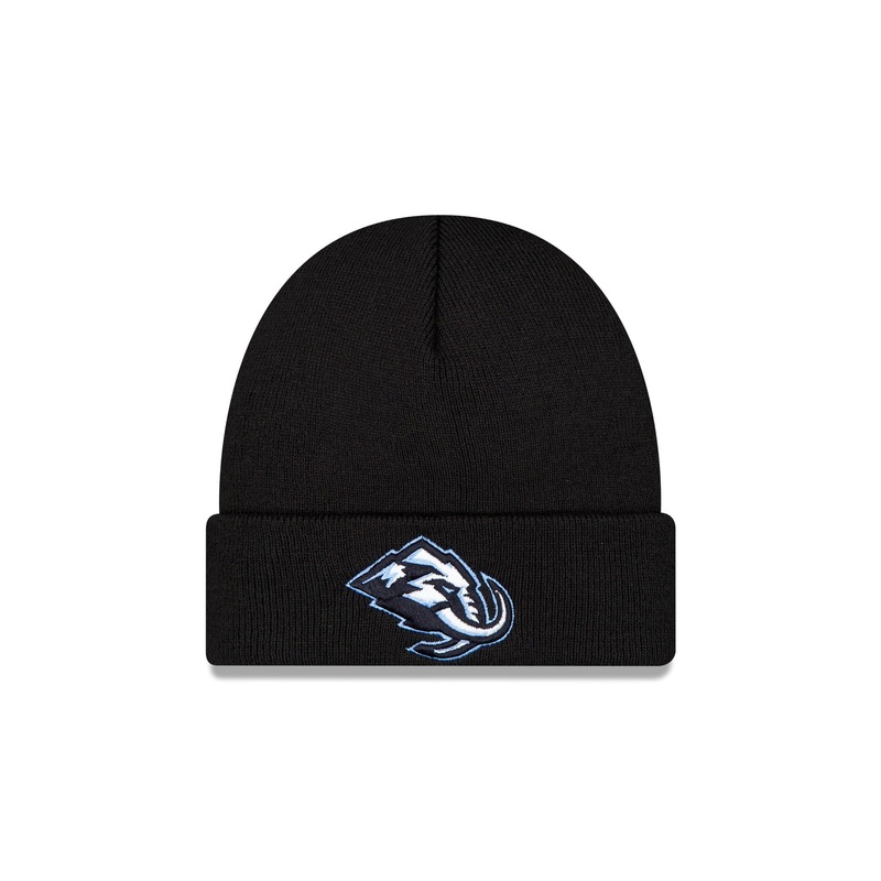 The Utah Mammoth Black Cuff Knit Beanie features an embroidered Mammoth logo at the front cuff.
