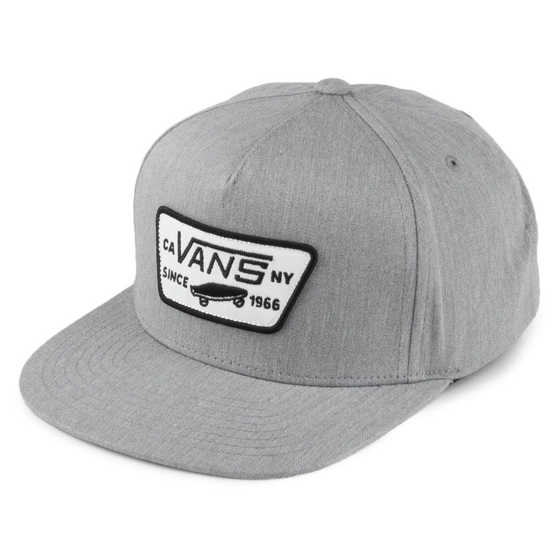 Here is the Vans Kids Full Patch Boys Snapback Cap in grey. This is a snapback cap with the Vans patch on the front panel. You will also find the Vans flag label at the back of the cap on the adjustable snap. This is a great casual style for your little one.