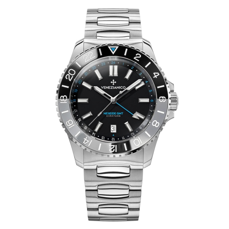 Per rendere ancora pi particolare Nereide GMT Ceratung sono stati adottati degli indici a lingotto, nuovo indicatore triangolare con elemento a contrasto risagomato e seconda scala oraria GMT sul rehaut in due colori a riprendere le due met della lunetta.