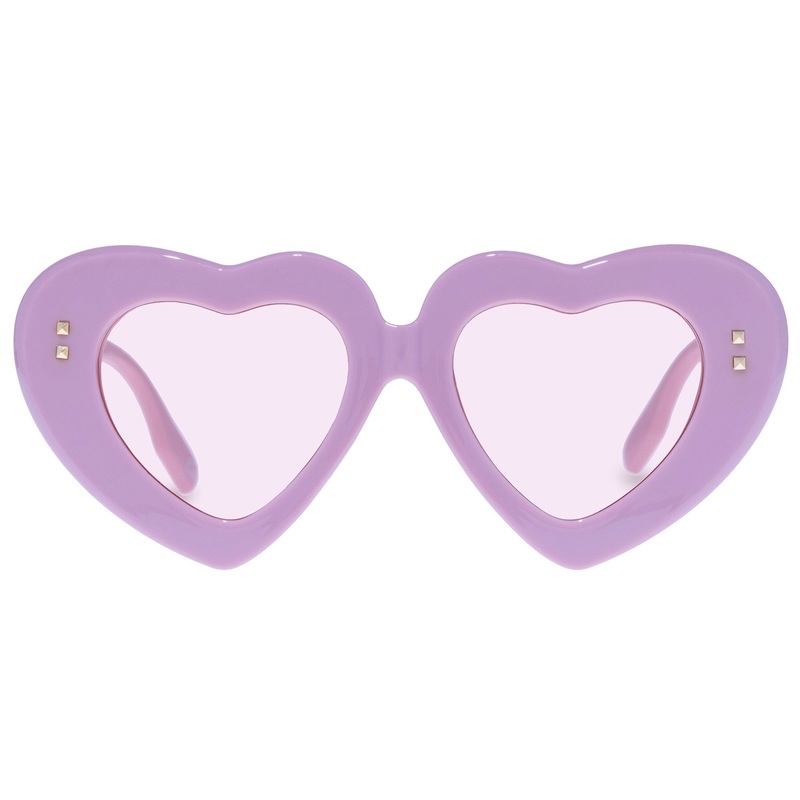 Introducing the frame of your dreams: a bold and playful heart shape with metal rivet detailing, offering a large fit and oversized, daring proportions. Finished in a candy pink frame with pint tint lenses. Made from polycarbonate frame material