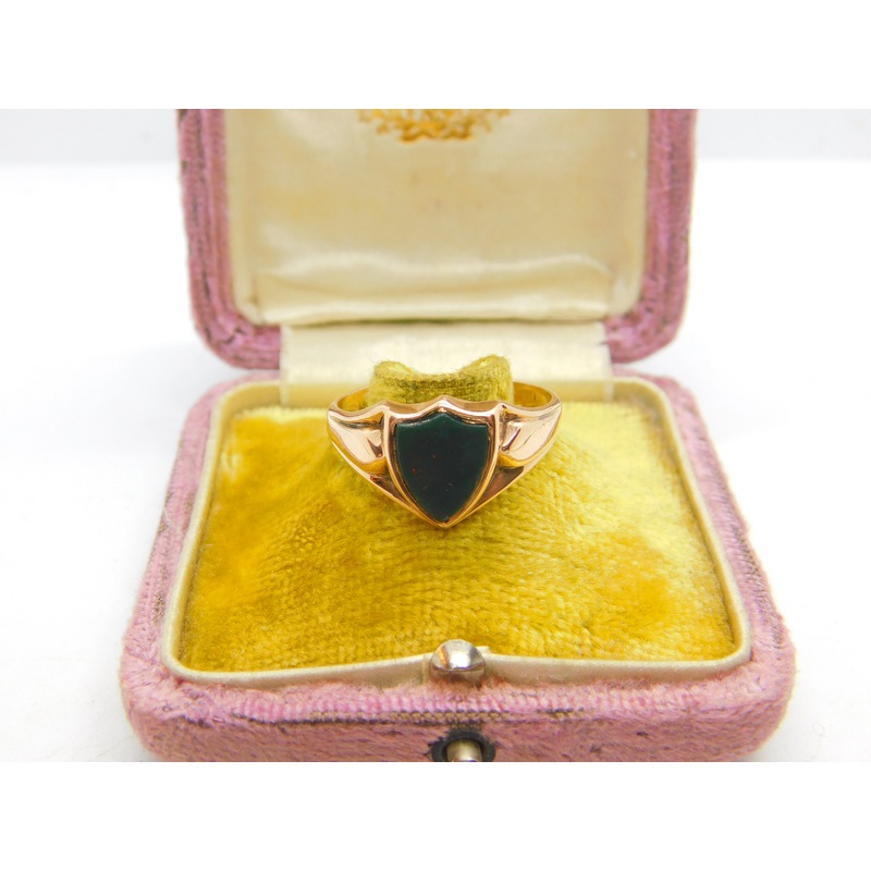 Victorian 9ct Gold Carved Shield Bloodstone Set Signet Ring 1891 Birmingham