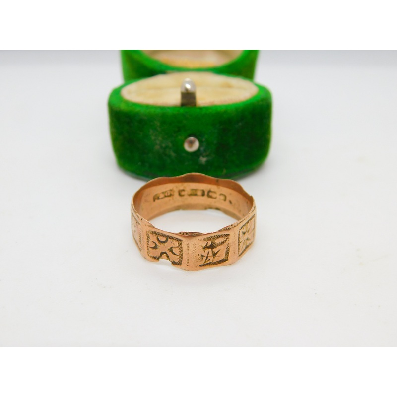 Victorian 9ct Rose Gold Cross Pattern Band Ring Antique 1887 Birmingham