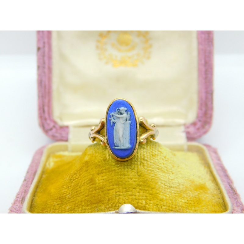 Details: A fantastic and wonderfully designed antique Victorian 9ct rose gold signet ring set with Wedgwood jasperware centrepiece featuring athena hallmarked to the edge of the centre c1890. This is a wonderful item that would make a perfect gift or addit