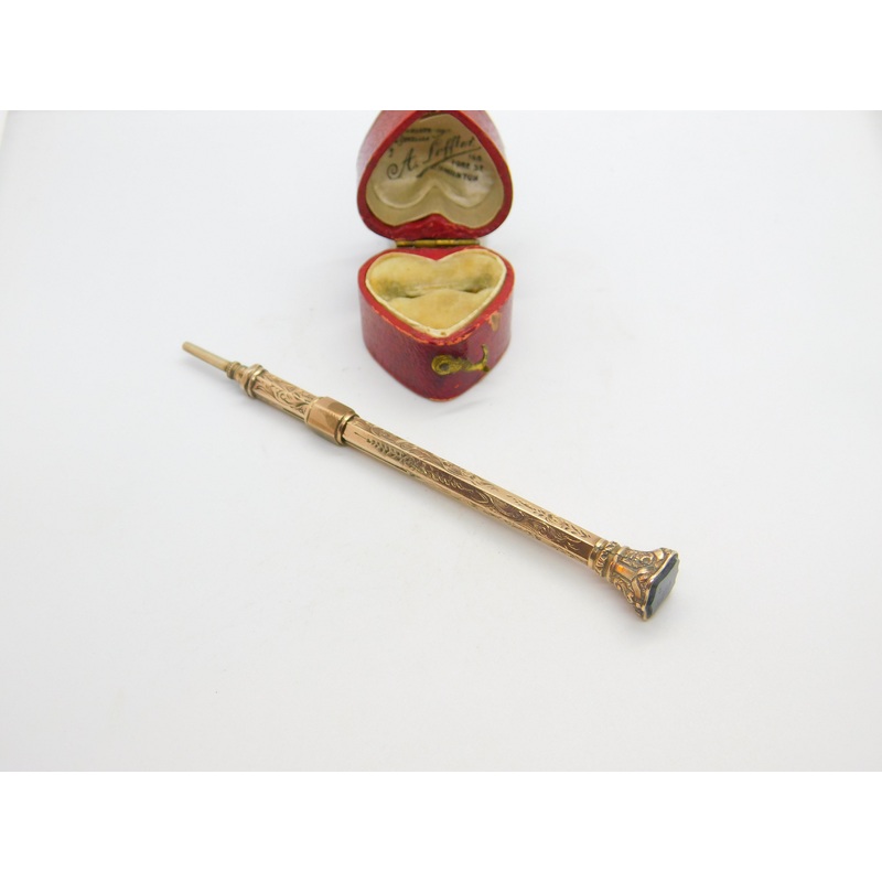 Victorian 9ct Yellow Gold Cased, Bloodstone Seal Top Propelling Pencil c1880