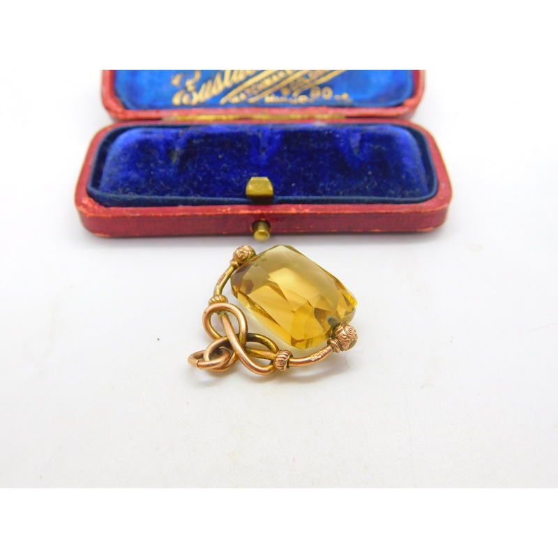 Details: A fantastic and wonderfully designed antique Victorian 9ct yellow gold ornate faceted citrine spinner fob pendant with lovely design marked 9ct to the edge c1880 - spins well. This is a wonderful item that would make a perfect gift or addition to