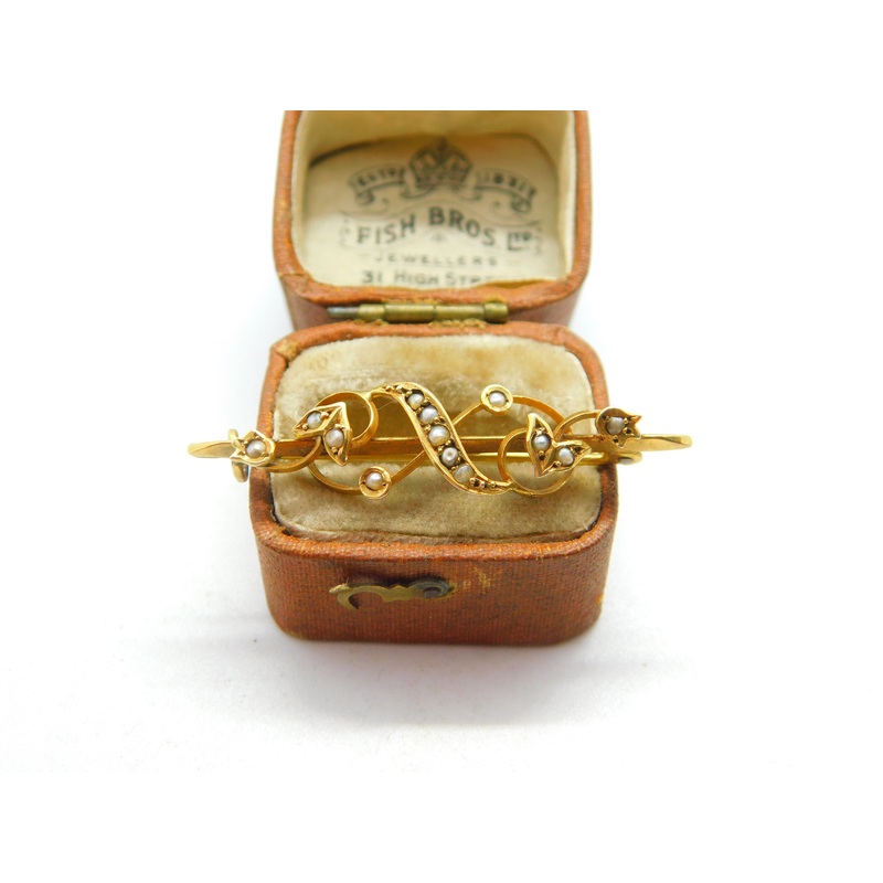 Details: A fantastic and wonderfully designed antique Victorian 9ct yellow gold and seed pearl floral sweetheart brooch hallmarked Chester 1899. This is a wonderful item that would make a perfect gift or addition to any collection. The BOX pictured is for