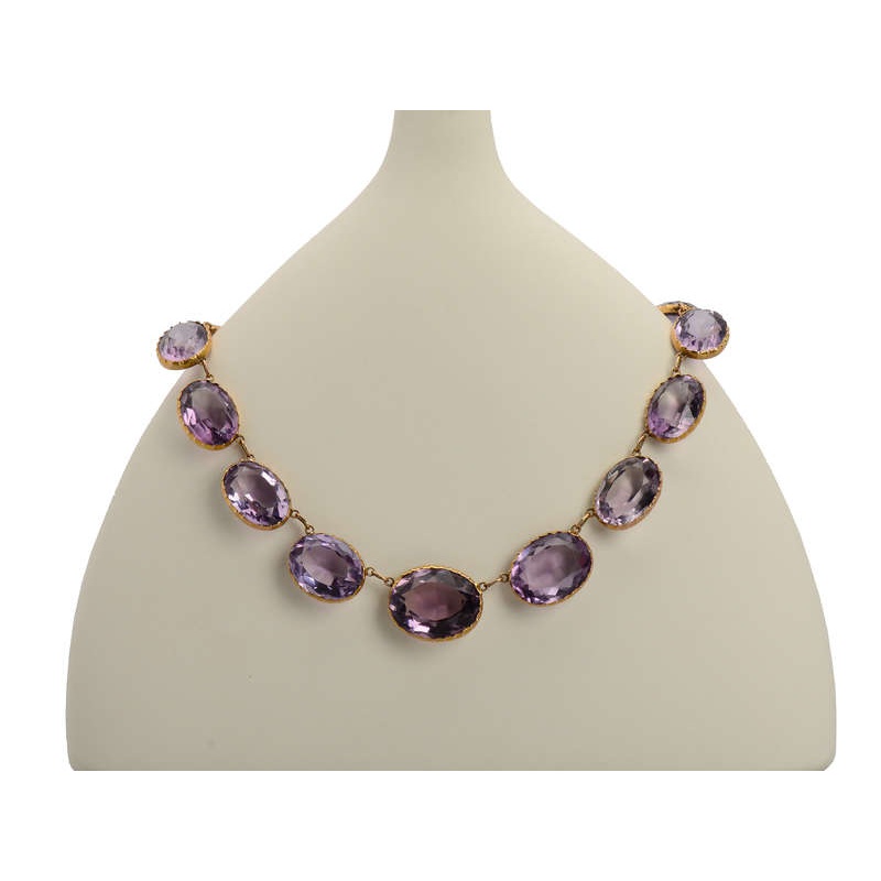 More than 158 carats of natural amethysts have found their way into this classic Victorian rivire (riviere) necklace.