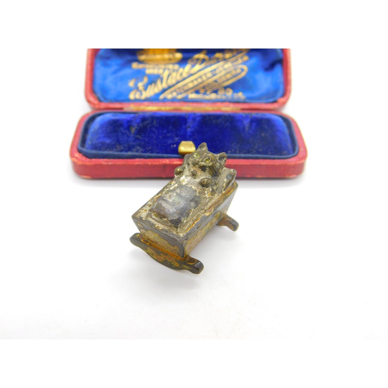 Details: A fantastic and wonderfully designed antique Victorian cold painted Vienna bronze miniature figurine in the form of a kitten in a cot or cradle marked to the base possibly Bergman c1860. The paint is fairly worn please note. This is a wonderful item that would make a perfect gift or addition to any collection. The BOX pictured is for PRESENTATION ONLY and is NOT included in the listings but used to frame the pictures unless specifically stated otherwise.