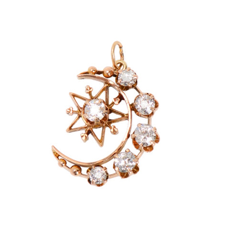 Victorian Crescent Moon Star Pendant Diamonds