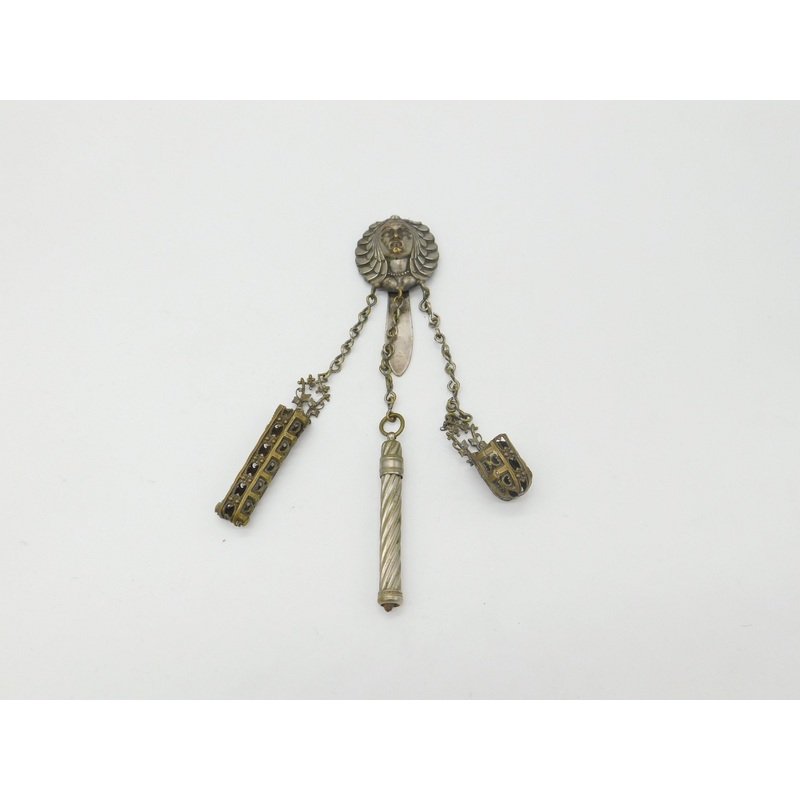 Be the first to review “Victorian Egyptian Revival Goddess Gilt Metal Chatelaine inc Tools Antique c1850”