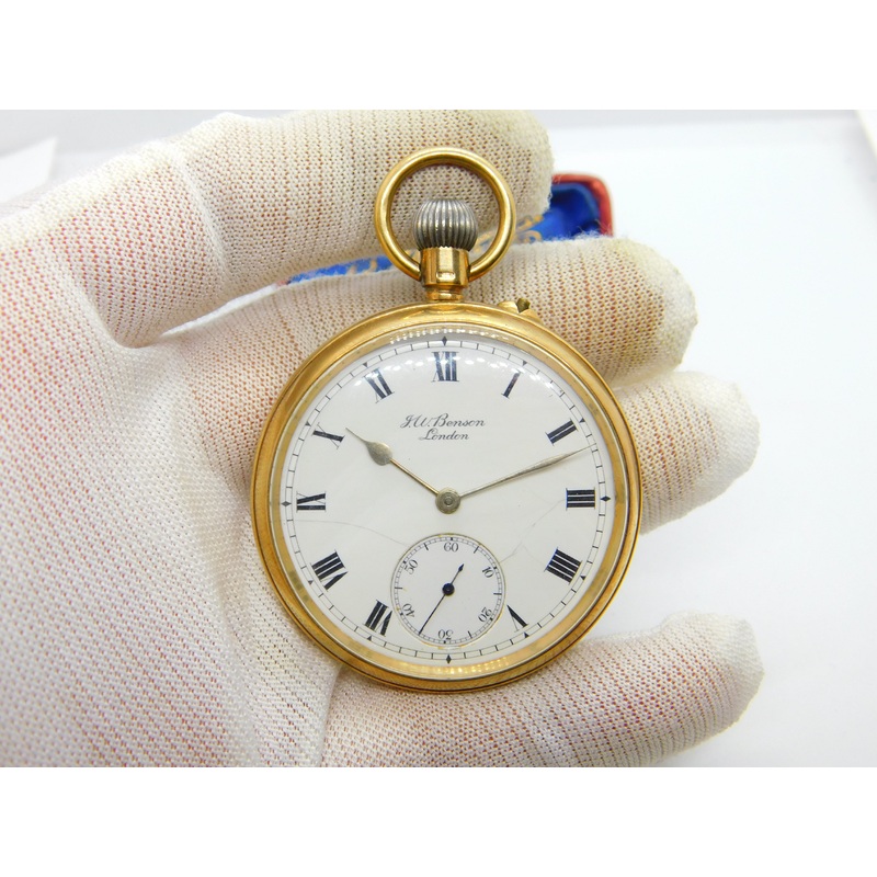 Details: A fantastic and wonderfully designed antique Victorian large gents 9ct yellow gold manual wind pocket watch with lovely detailing by J.W Benson of London hallmarked London, 1876 to the interior casing. The watch has minor hairline cracks to the enamel dial face. Winds up well and seems to hold its time, movement in good condition. Please note we are not watch experts and this may need servicing. This is a wonderful item that would make a perfect gift or addition to any collection. The BOX pictured is for PRESENTATION ONLY and is NOT included in the listings but used to frame the pictures unless specifically stated otherwise.