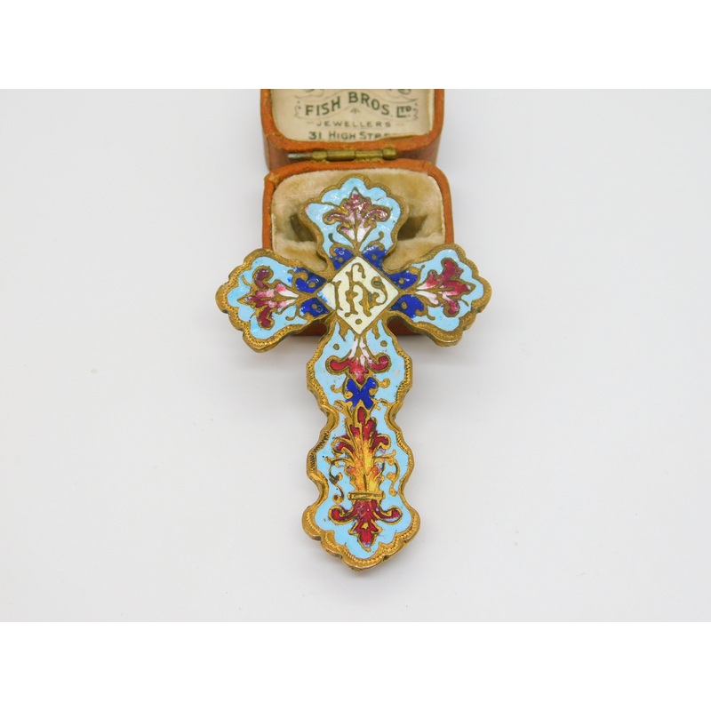 Details: A fantastic and wonderfully designed antique Victorian gilt metal and colorful enamel IHS religious christian cross finial or adornment with superb detailing c1860. Would equally look wonderful set on a wooden box. This is a wonderful item that wo