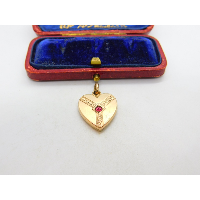 Details: A fantastic and wonderfully designed antique Victorian gold plated sweetheart pendant with ruby paste setting c1900. This is a wonderful item that would make a perfect gift or addition to any collection. The BOX pictured is for PRESENTATION ONLY a