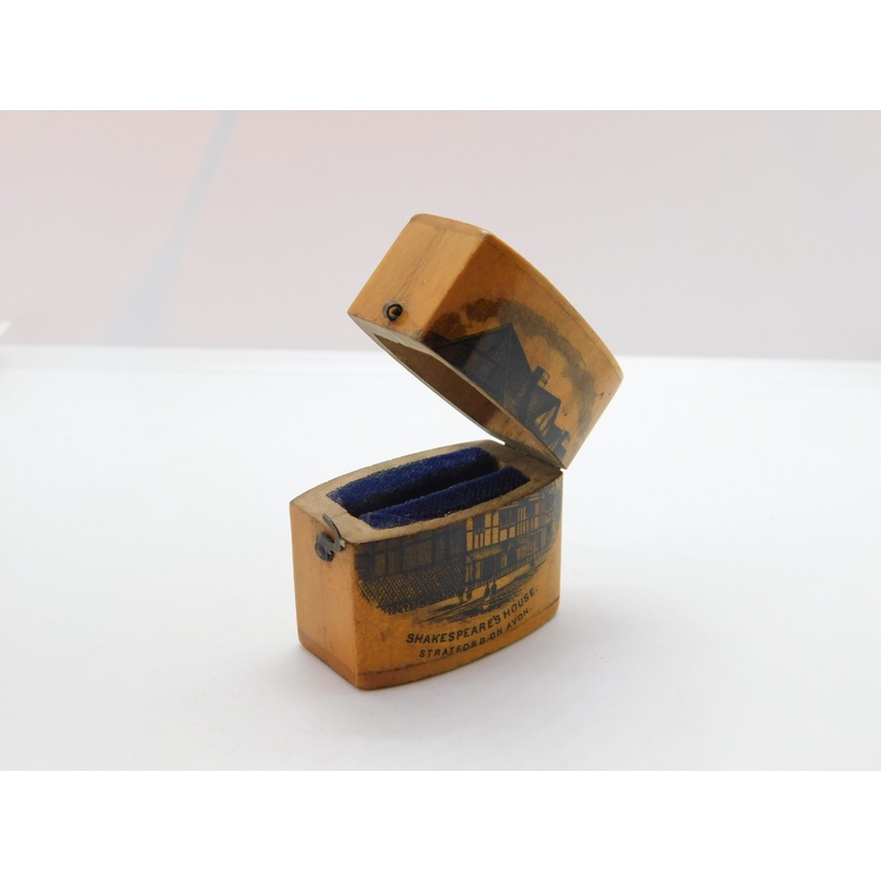 Details: A fantastic and wonderfully designed antique Victorian unusual mauchline ware treen jewellery ring box depicting William Shakespeare's House to the edge c1890. This is a wonderful item that would make a perfect gift or addition to any collection.