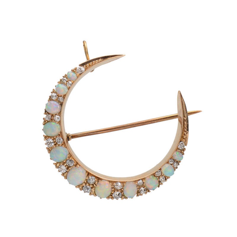 Both a pendant and a brooch, Australian opals and diamonds coalesce in harmony in this symbolic Victorian antique jewel.