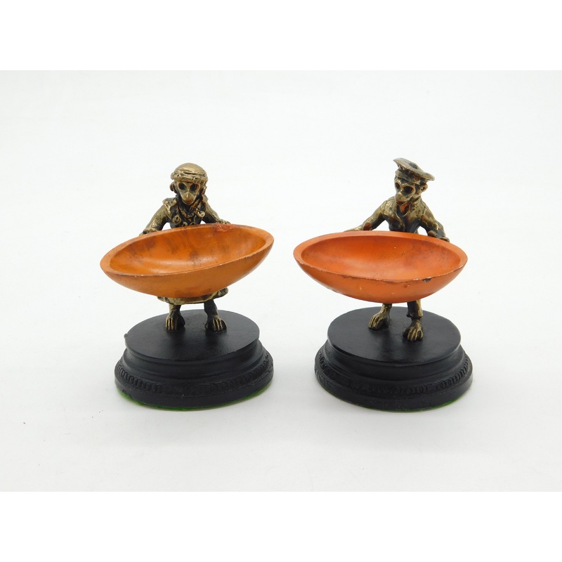 Details: A fantastic and wonderfully designed antique Victorian pair of cast bronze novelty mr and mrs monkey salt cellars depicting the monkeys holding large dishes set on wooden plinth bases c1860. Possibly Austrian. This is a wonderful item that would m