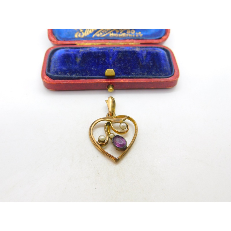 Details: A fantastic and wonderfully designed antique Victorian rolled gold sweetheart drop pendant set with amethyst & seed pearls c1880. This is a wonderful item that would make a perfect gift or addition to any collection. The BOX pictured is for PRESENTATION ONLY and is NOT included in the listings but used to frame the pictures unless specifically stated otherwise.